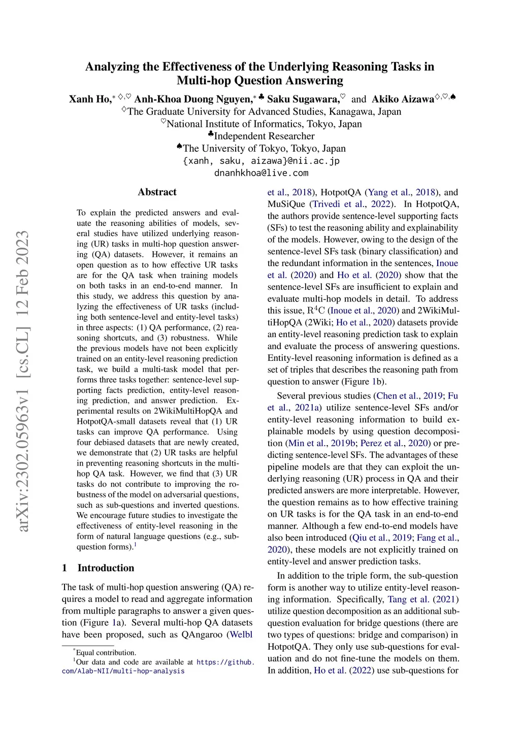 Multi-hop Question Answering