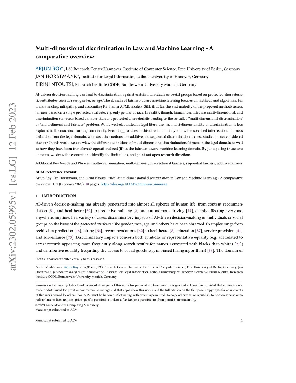 Multi-dimensional discrimination in Law and Machine Learning -- A