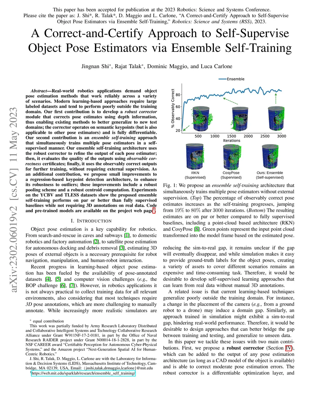 A Correct-and-Certify Approach to Self-Supervise Object Pose Estimators