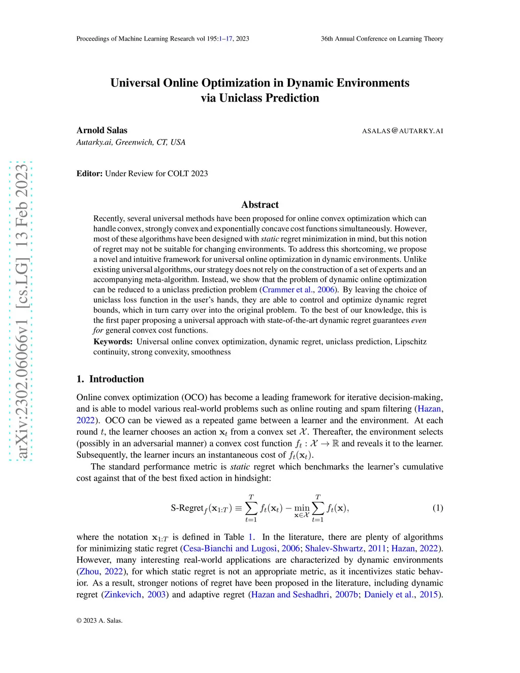 Universal Online Optimization in Dynamic Environments via Uniclass