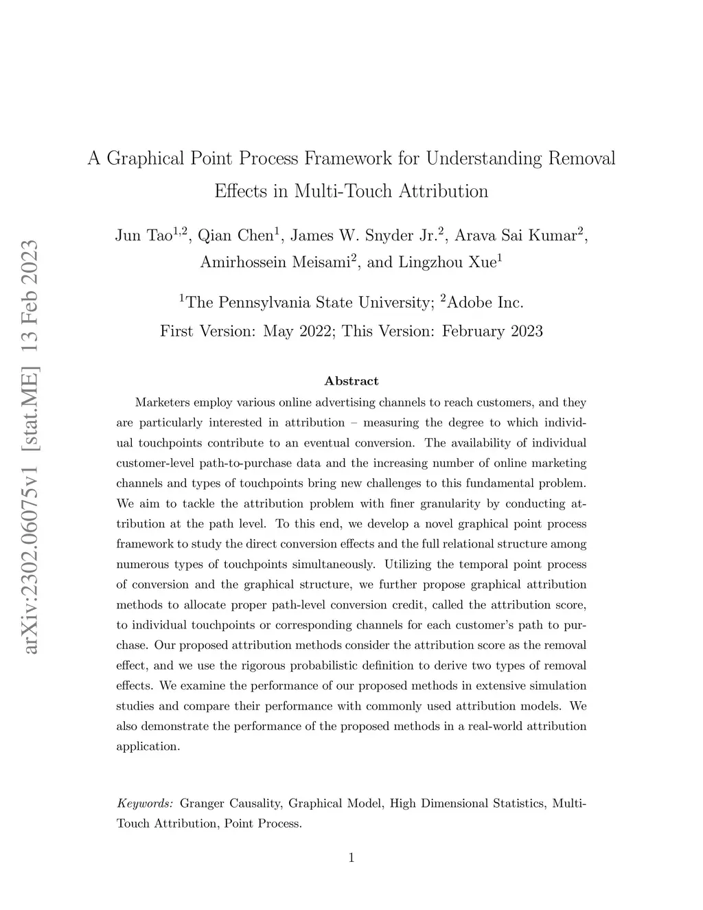 Marketers employ various online advertising channels to reach customers, and they are particularly interested in attribution for measuring the degree to which individual touchpoints contribute to an eventual conversion. The availability of individual customer-level path-to-purchase data and the increasing number of online marketing channels and types of touchpoints bring new challenges to this fundamental problem. We aim to tackle the attribution problem with finer granularity by conducting attribution at the path level. To this end, we develop a novel graphical point process framework to study the direct conversion effects and the full relational structure among numerous types of touchpoints simultaneously. Utilizing the temporal point process of conversion and the graphical structure, we further propose graphical attribution methods to allocate proper path-level conversion credit, called the attribution score, to individual touchpoints or corresponding channels for each customer's path to purchase. Our proposed attribution methods consider the attribution score as the removal effect, and we use the rigorous probabilistic definition to derive two types of removal effects. We examine the performance of our proposed methods in extensive simulation studies and compare their performance with commonly used attribution models. We also demonstrate the performance of the proposed methods in a real-world attribution application.