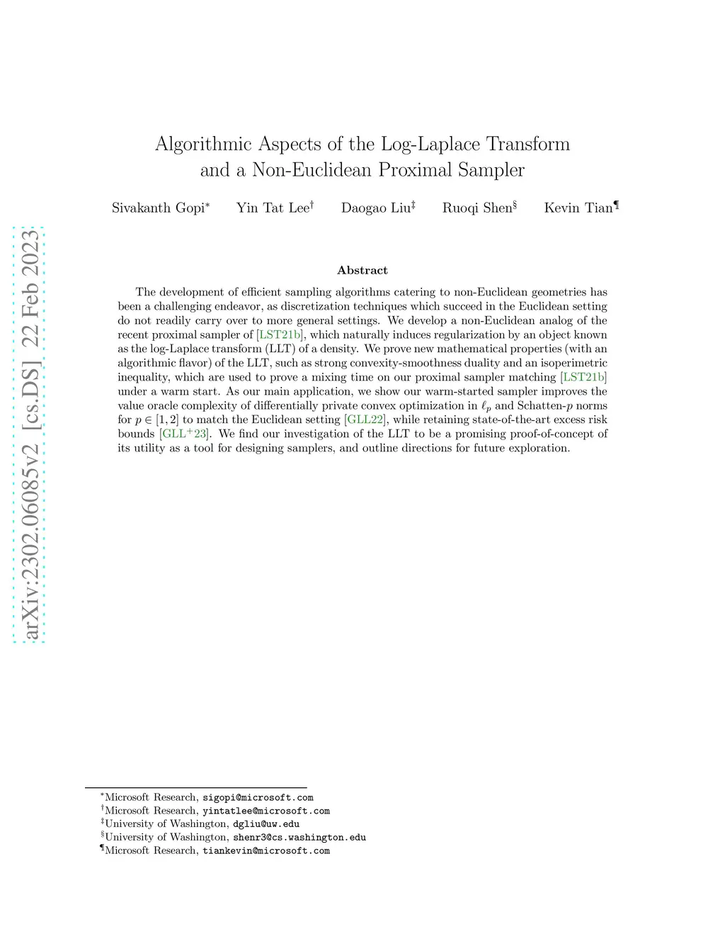 Algorithmic Aspects of the Log-Laplace Transform and a Non-Euclidean Proximal Sampler