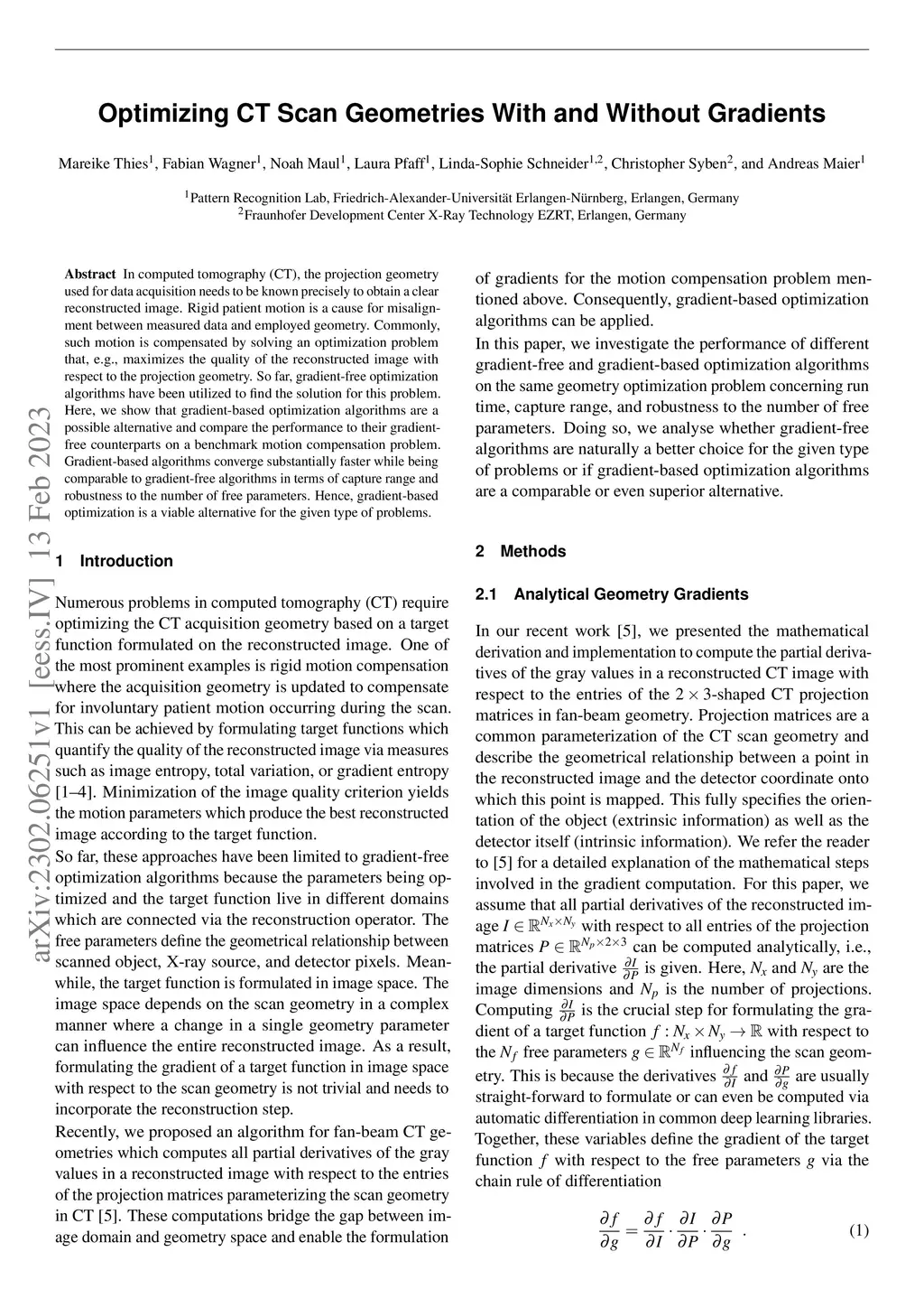 Optimizing CT Scan Geometries With and Without Gradients
