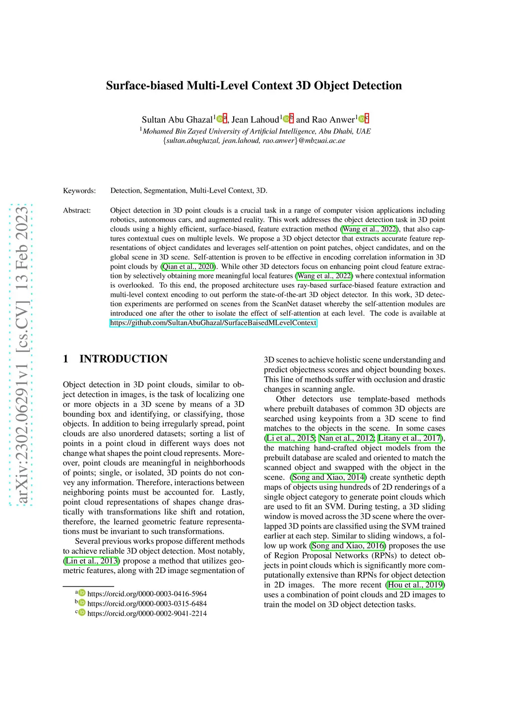 Object detection in 3D point clouds is a crucial task in a range of computer vision applications including robotics, autonomous cars, and augmented reality. This work addresses the object detection task in 3D point clouds using a highly efficient, surface-biased, feature extraction method (wang2022rbgnet), that also captures contextual cues on multiple levels. We propose a 3D object detector that extracts accurate feature representations of object candidates and leverages self-attention on point patches, object candidates, and on the global scene in 3D scene. Self-attention is proven to be effective in encoding correlation information in 3D point clouds by (xie2020mlcvnet). While other 3D detectors focus on enhancing point cloud feature extraction by selectively obtaining more meaningful local features (wang2022rbgnet) where contextual information is overlooked. To this end, the proposed architecture uses ray-based surface-biased feature extraction and multi-level context encoding to outperform the state-of-the-art 3D object detector. In this work, 3D detection experiments are performed on scenes from the ScanNet dataset whereby the self-attention modules are introduced one after the other to isolate the effect of self-attention at each level.