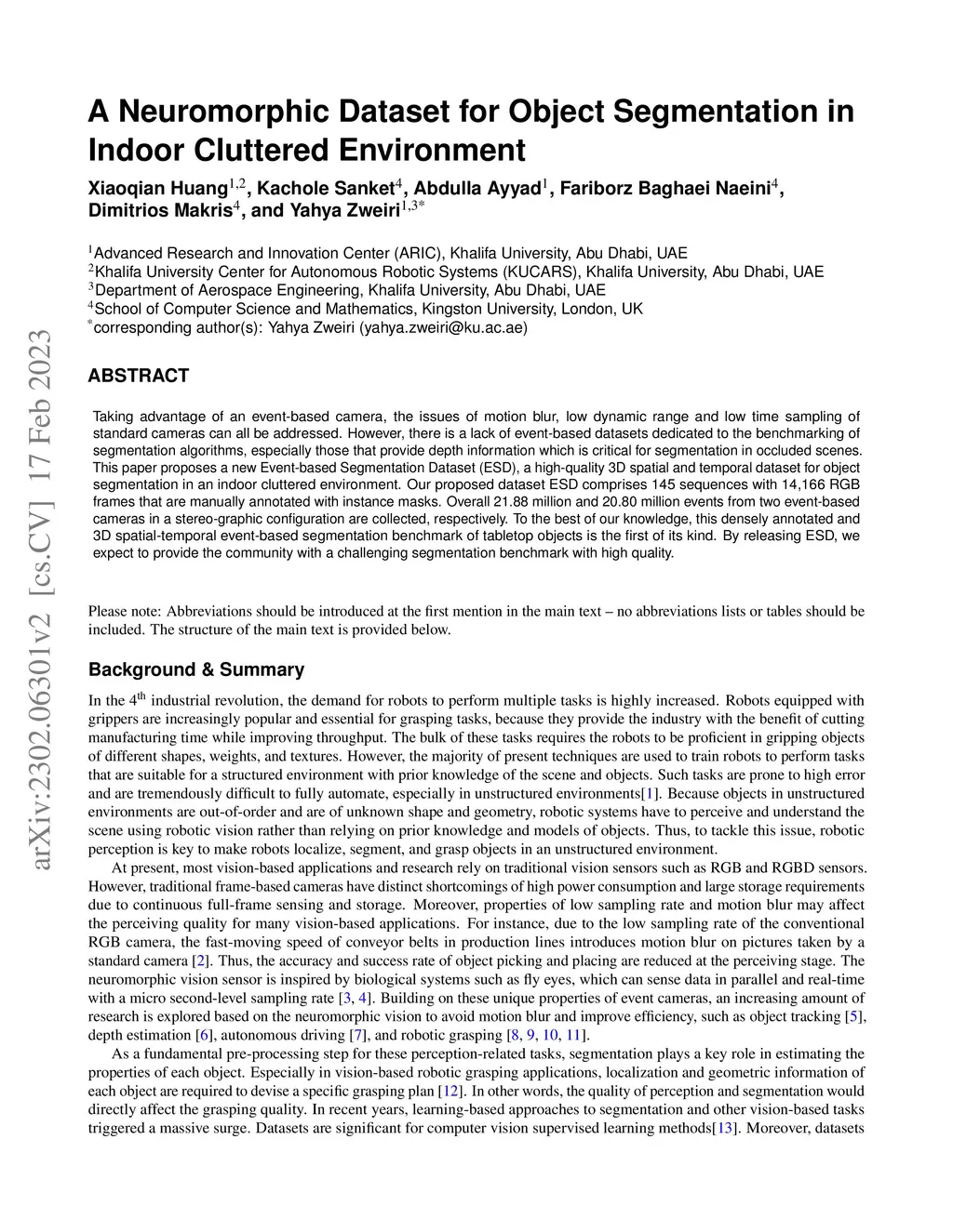 A Neuromorphic Dataset for Object Segmentation in Indoor Cluttered