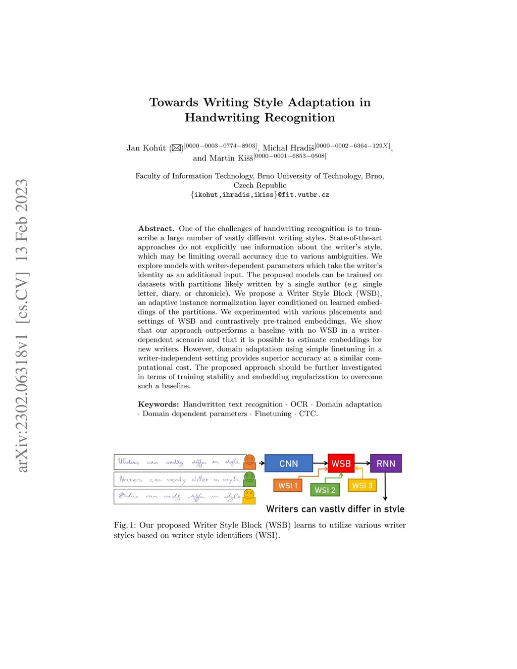 Towards Writing Style Adaptation in Handwriting Recognition