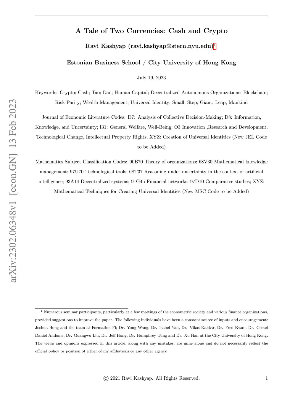 We discuss numerous justifications for why crypto-currencies would be highly conducive for the smooth functioning of today's society. We provide several comparisons between cryptocurrencies issued by blockchain projects, crypto, and conventional government issued currencies, cash or fiat. We summarize seven fundamental innovations that would be required for participants to have greater confidence in decentralized finance (DeFi) and to obtain wealth appreciation coupled with better risk management. The conceptual ideas we discuss outline an approach to: 1) Strengthened Security Blueprint; 2) Rebalancing and Trade Execution Suited for Blockchain Nuances 3) Volatility and Variance Adjusted Weight Calculation 4) Accommodating Investor Preferences and Risk Parity Construction; 5) Profit Sharing and Investor Protection; 6) Concentration Risk Indicator and Performance Metrics; 7) Multi-chain expansion and Select Strategic Initiatives including the notion of a Decentralized Autonomous Organization (DAO). Incorporating these concepts into several projects would also facilitate the growth of the overall blockchain eco-system so that this technology can, have wider mainstream adoption and, fulfill its potential in transforming all aspects of human interactions.