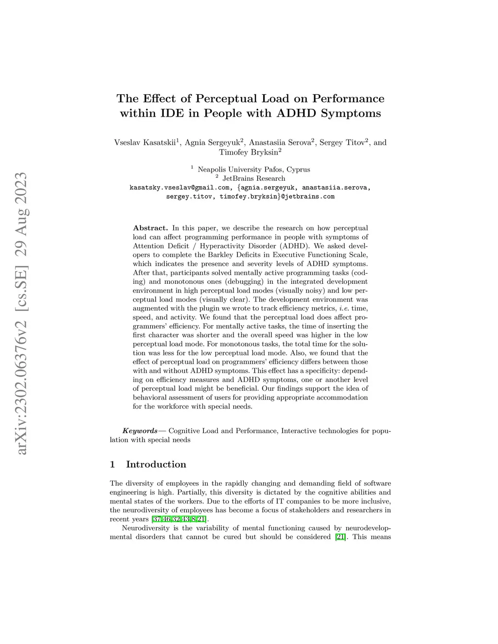 The Effect of Perceptual Load on Performance within IDE in People with