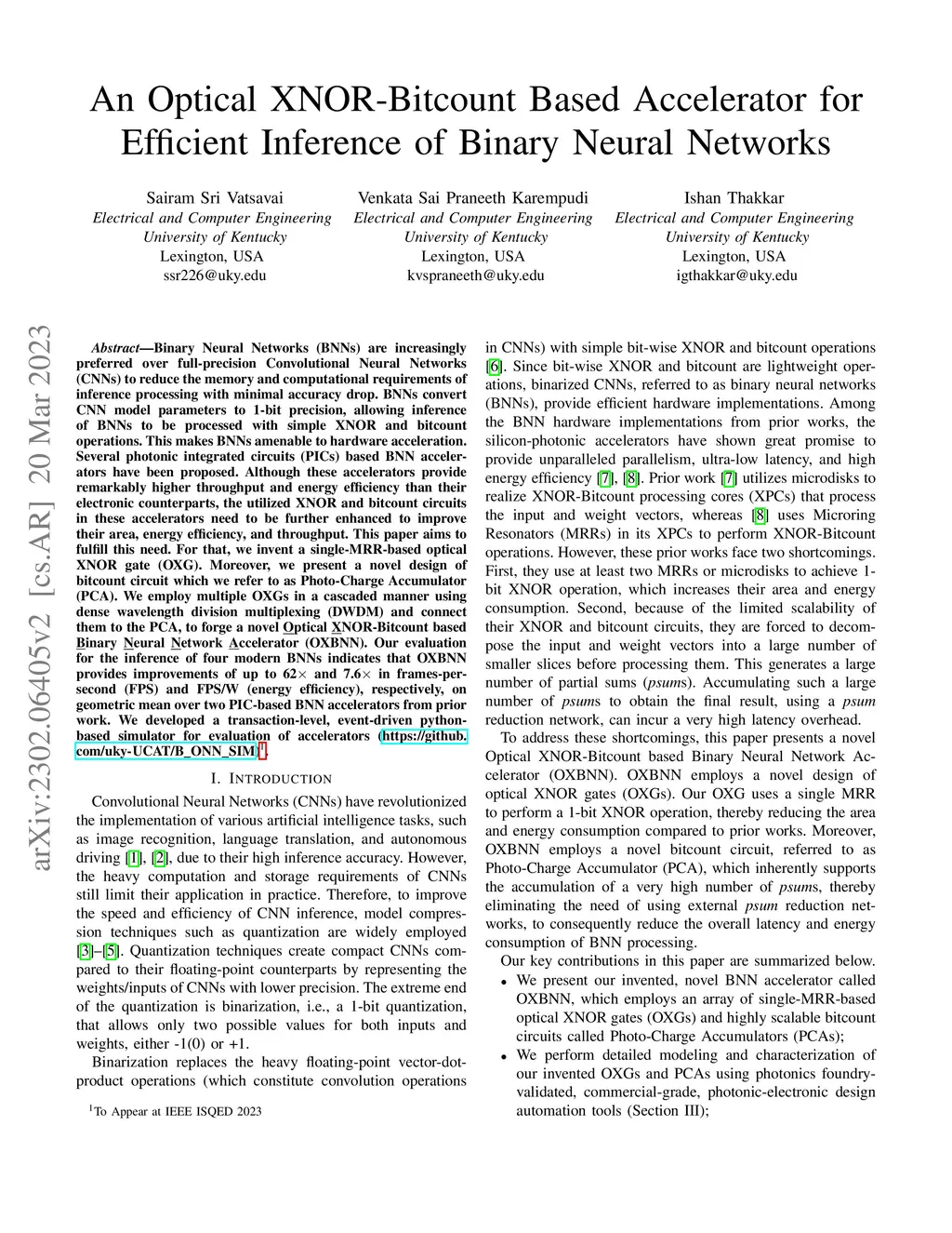 An Optical XNOR-Bitcount Based Accelerator for Efficient Inference of