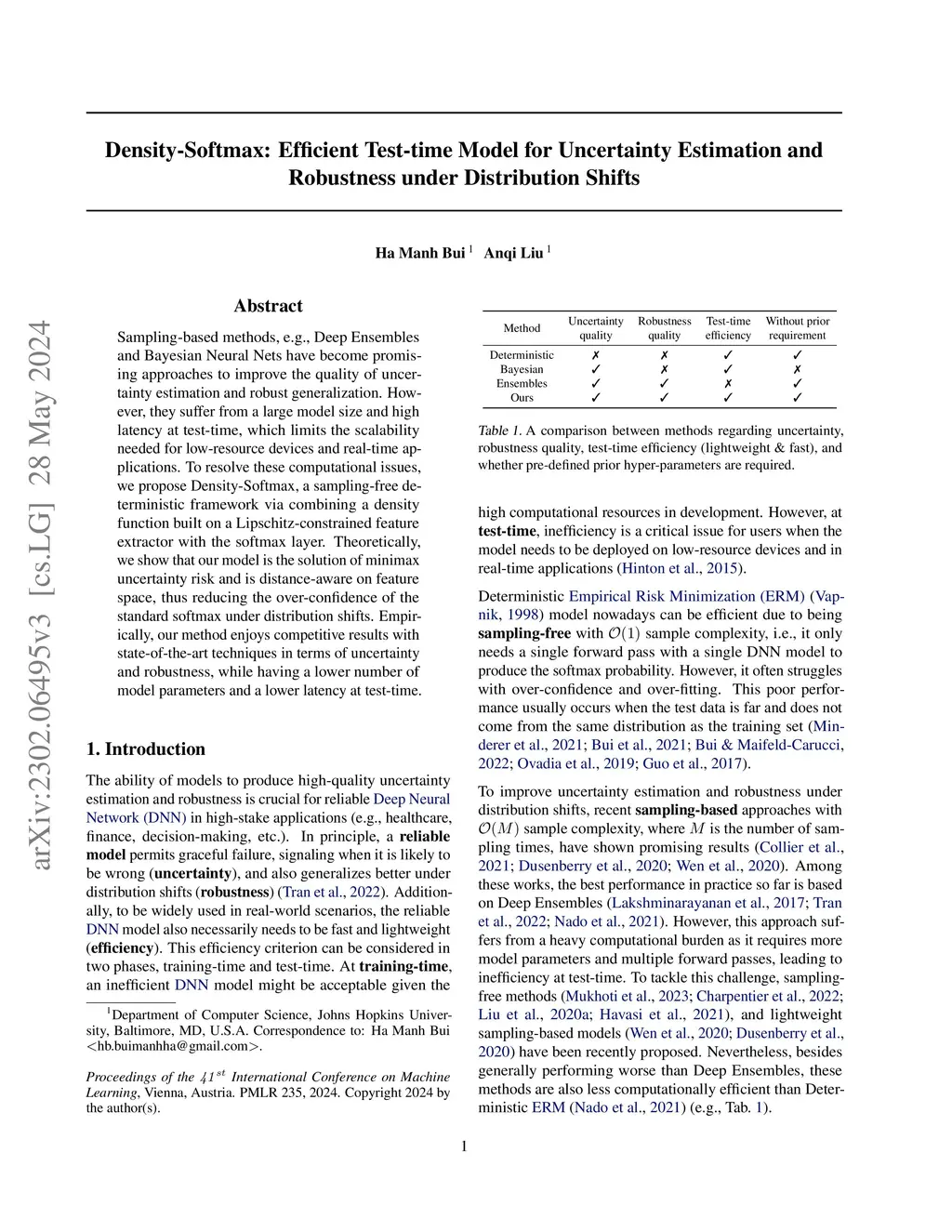Prevalent deterministic deep-learning models suffer from significant over-confidence under distribution shifts. Probabilistic approaches can reduce this problem but struggle with computational efficiency. In this paper, we propose Density-Softmax, a fast and lightweight deterministic method to improve calibrated uncertainty estimation via a combination of density function with the softmax layer. By using the latent representation's likelihood value, our approach produces more uncertain predictions when test samples are distant from the training samples. Theoretically, we show that Density-Softmax can produce high-quality uncertainty estimation with neural networks, as it is the solution of minimax uncertainty risk and is distance-aware, thus reducing the over-confidence of the standard softmax. Empirically, our method enjoys similar computational efficiency as a single forward pass deterministic with standard softmax on the shifted toy, vision, and language datasets across modern deep-learning architectures. Notably, Density-Softmax uses 4 times fewer parameters than Deep Ensembles and 6 times lower latency than Rank-1 Bayesian Neural Network, while obtaining competitive predictive performance and lower calibration errors under distribution shifts.