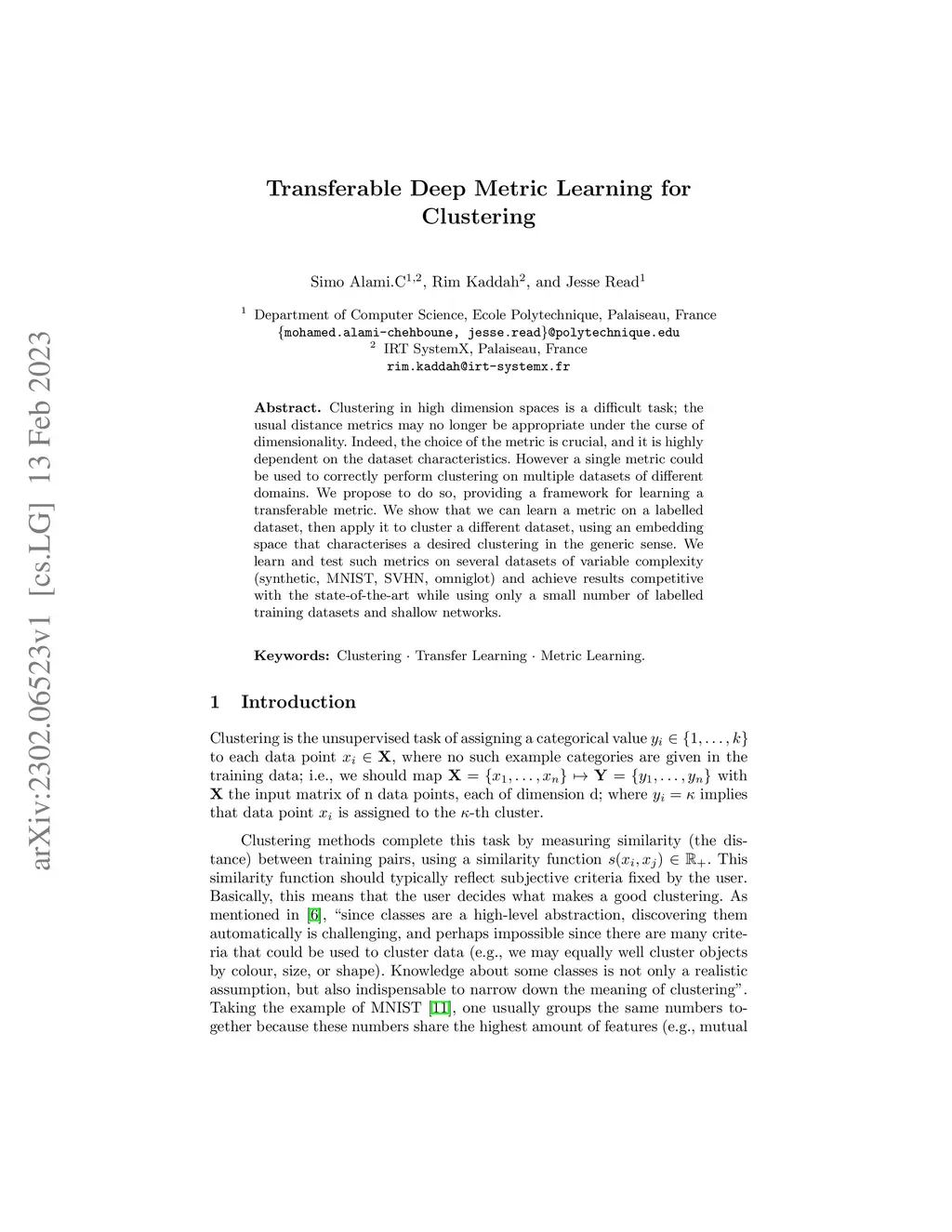 Transferable Deep Metric Learning for Clustering