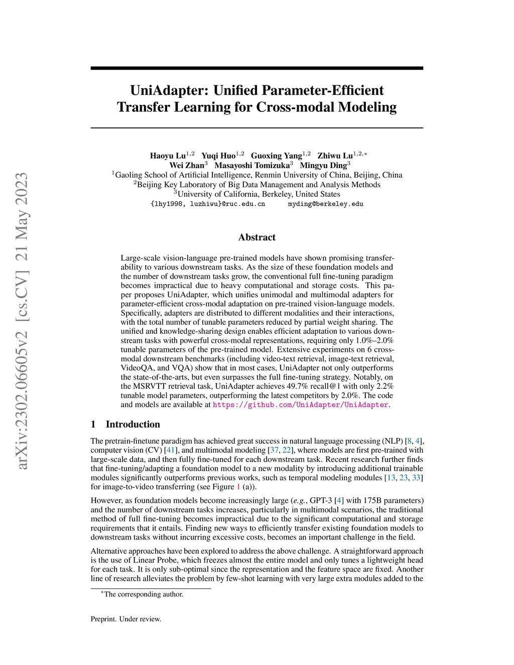 UniAdapter: Unified Parameter-Efficient Transfer Learning for