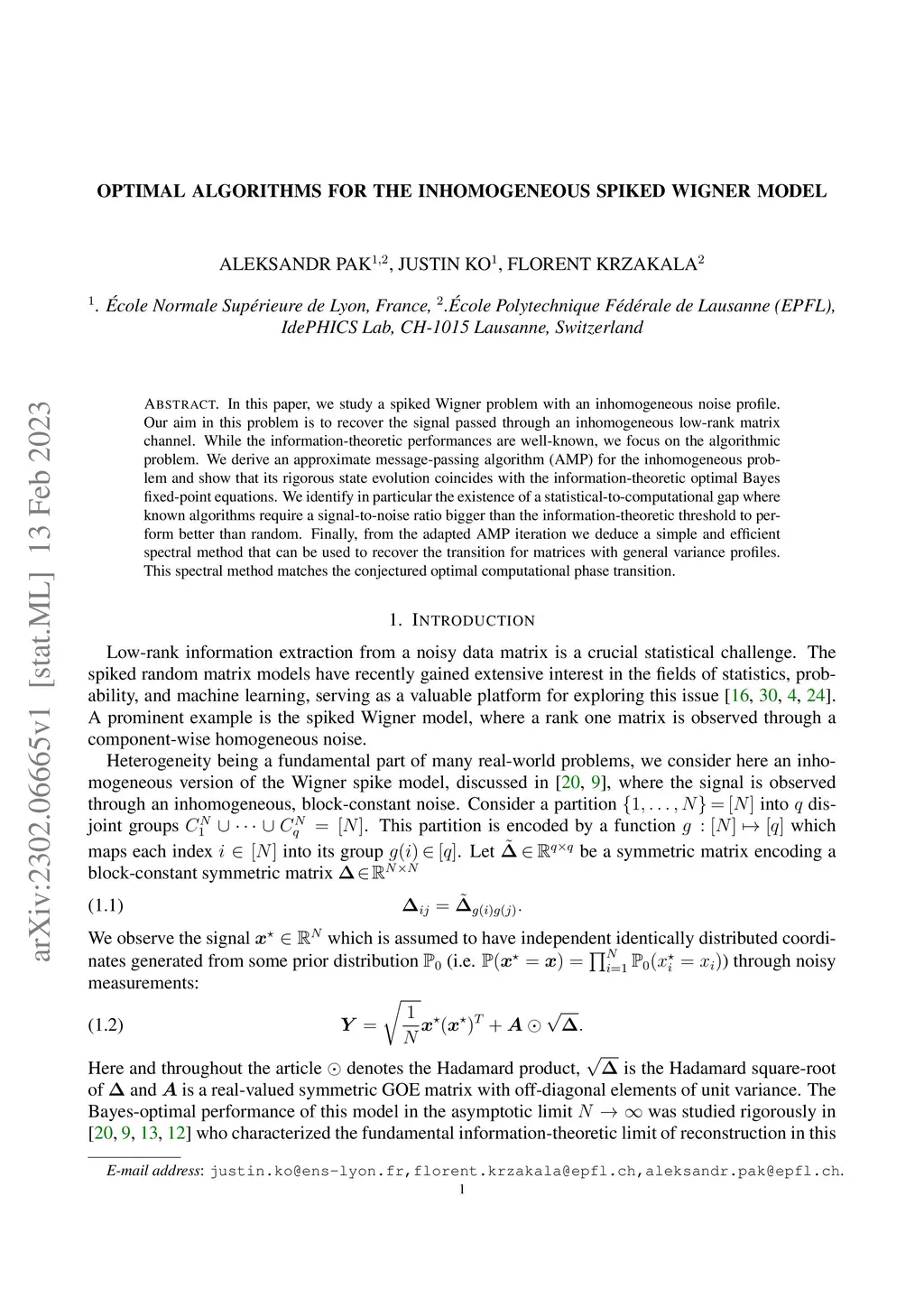 Optimal Algorithms for the Inhomogeneous Spiked Wigner Model