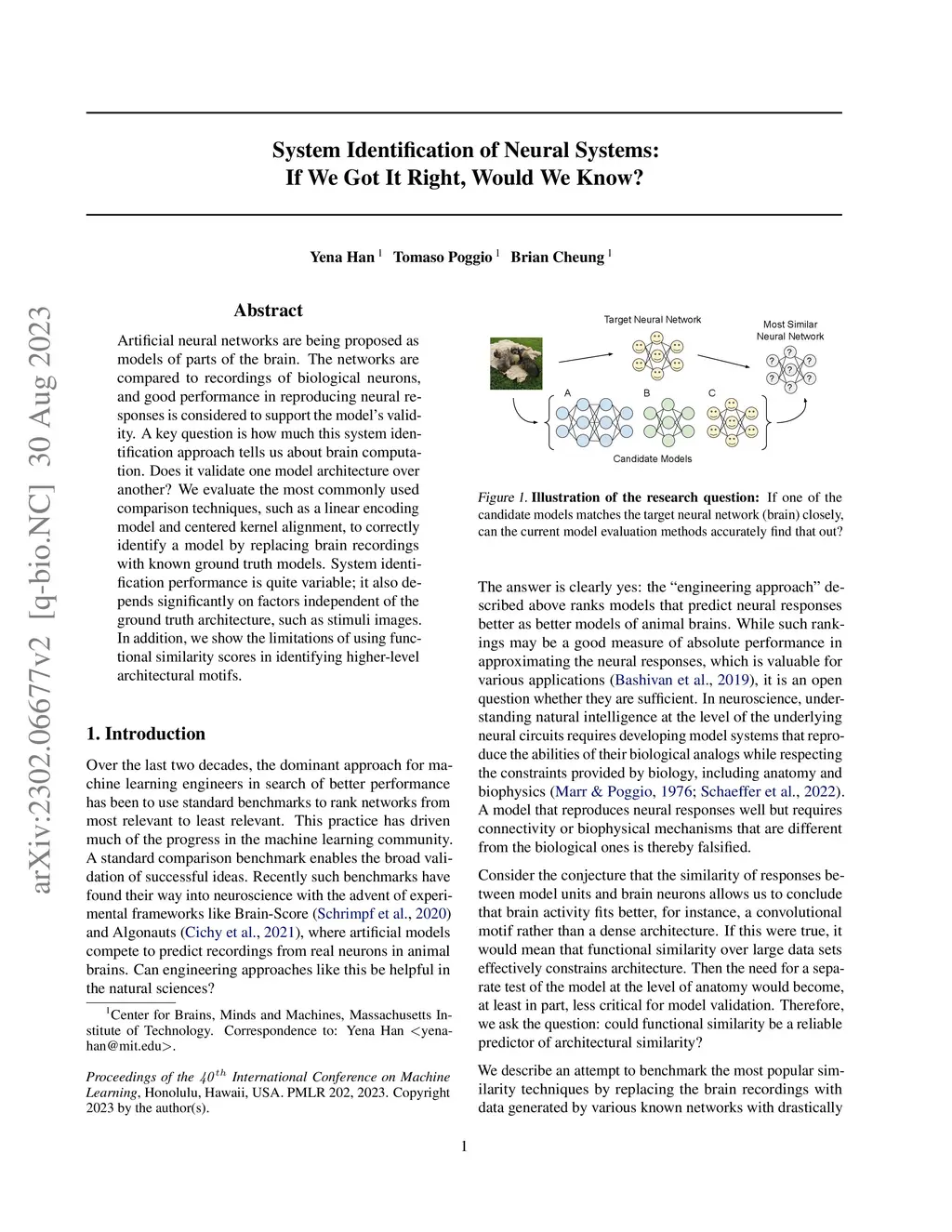 Artificial neural networks are being proposed as models of parts of the brain. The networks are compared to recordings of biological neurons, and good performance in reproducing neural responses is considered to support the model's validity. A key question is how much this system identification approach tells us about brain computation. Does it validate one model architecture over another? We evaluate the most commonly used comparison techniques, such as a linear encoding model and centered kernel alignment, to correctly identify a model by replacing brain recordings with known ground truth models. System identification performance is quite variable; it also depends significantly on factors independent of the ground truth architecture, such as stimuli images. In addition, we show the limitations of using functional similarity scores in identifying higher-level architectural motifs.
