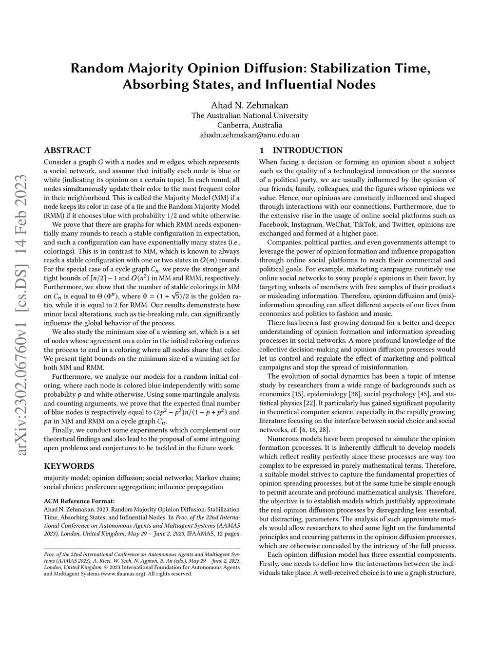 Consider a graph G with n nodes and m edges, which represents a social network, and assume that initially each node is blue or white. In each round, all nodes simultaneously update their color to the most frequent color in their neighborhood. This is called the Majority Model (MM) if a node keeps its color in case of a tie and the Random Majority Model (RMM) if it chooses blue with probability 1/2 and white otherwise. We prove that there are graphs for which RMM needs exponentially many rounds to reach a stable configuration in expectation, and such a configuration can have exponentially many states (i.e., colorings). This is in contrast to MM, which is known to always reach a stable configuration with one or two states in rounds. For the special case of a cycle graph C_n, we prove the stronger and tight bounds of and in MM and RMM, respectively. Furthermore, we show that the number of stable colorings in MM on C_n is equal to , where is the golden ratio, while it is equal to 2 for RMM. We also study the minimum size of a winning set, which is a set of nodes whose agreement on a color in the initial coloring enforces the process to end in a coloring where all nodes share that color. We present tight bounds on the minimum size of a winning set for both MM and RMM. Furthermore, we analyze our models for a random initial coloring, where each node is colored blue independently with some probability and white otherwise. Using some martingale analysis and counting arguments, we prove that the expected final number of blue nodes is respectively equal to and pn in MM and RMM on a cycle graph C_n. Finally, we conduct some experiments which complement our theoretical findings and also lead to the proposal of some intriguing open problems and conjectures to be tackled in future work.