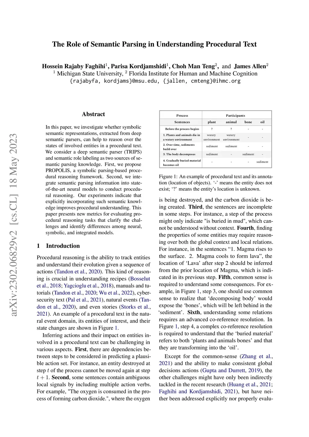 The Role of Semantic Parsing in Understanding Procedural Text
