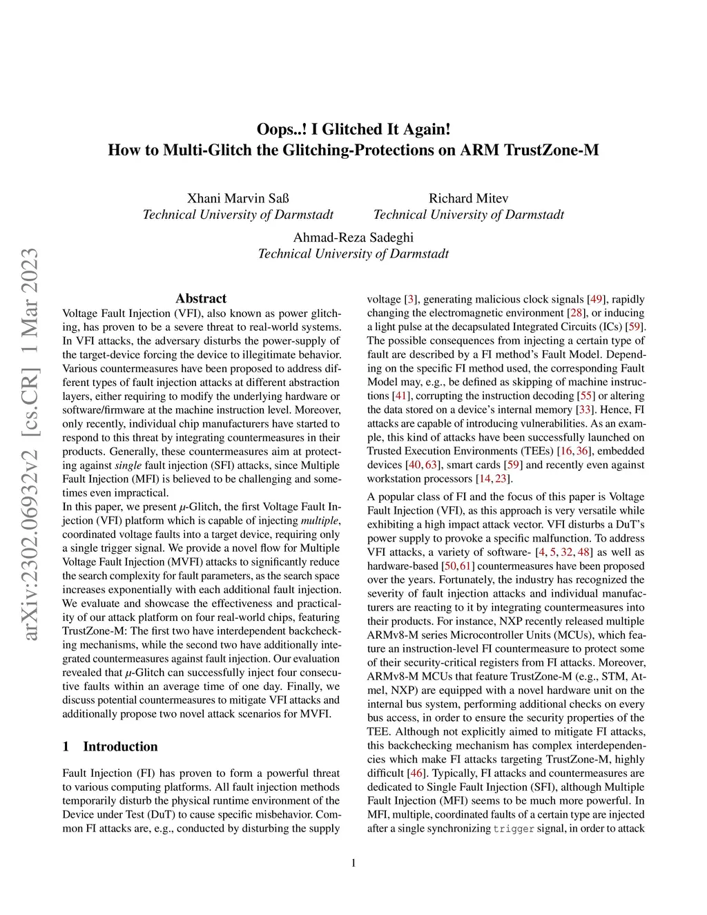 Voltage Fault Injection (VFI), also known as power glitching, has proven to be a severe threat to real-world systems. In VFI attacks, the adversary disturbs the power-supply of the target-device forcing the device to illegitimate behavior. Various countermeasures have been proposed to address different types of fault injection attacks at different abstraction layers, either requiring to modify the underlying hardware or software/firmware at the machine instruction level. Moreover, only recently, individual chip manufacturers have started to respond to this threat by integrating countermeasures in their products. Generally, these countermeasures aim at protecting against single fault injection (SFI) attacks, since Multiple Fault Injection (MFI) is believed to be challenging and sometimes even impractical. In this paper, we present {\mu}-Glitch, the first Voltage Fault Injection (VFI) platform which is capable of injecting multiple, coordinated voltage faults into a target device, requiring only a single trigger signal. We provide a novel flow for Multiple Voltage Fault Injection (MVFI) attacks to significantly reduce the search complexity for fault parameters, as the search space increases exponentially with each additional fault injection. We evaluate and showcase the effectiveness and practicality of our attack platform on four real-world chips, featuring TrustZone-M: The first two have interdependent backchecking mechanisms, while the second two have additionally integrated countermeasures against fault injection. Our evaluation revealed that {\mu}-Glitch can successfully inject four consecutive faults within an average time of one day. Finally, we discuss potential countermeasures to mitigate VFI attacks and additionally propose two novel attack scenarios for MVFI.