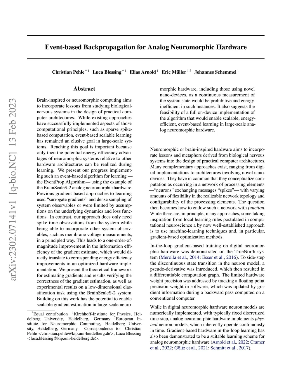 Event-based Backpropagation for Analog Neuromorphic Hardware
