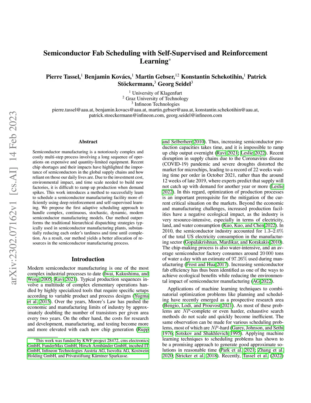 Semiconductor Fab Scheduling with Self-Supervised and Reinforcement