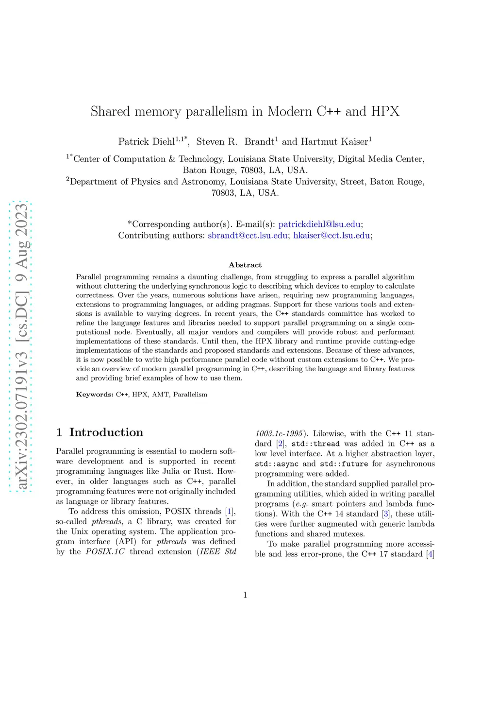 Parallel programming remains a daunting challenge, from the struggle to express a parallel algorithm without cluttering the underlying synchronous logic, to describing which devices to employ in a calculation, to correctness. Over the years, numerous solutions have arisen, many of them requiring new programming languages, extensions to programming languages, or the addition of pragmas. Support for these various tools and extensions is available to a varying degree. In recent years, the C++ standards committee has worked to refine the language features and libraries needed to support parallel programming on a single computational node. Eventually, all major vendors and compilers will provide robust and performant implementations of these standards. Until then, the HPX library and runtime provides cutting edge implementations of the standards, as well as proposed standards and extensions. Because of these advances, it is now possible to write high performance parallel code without custom extensions to C++. We provide an overview of modern parallel programming in C++, describing the language and library features, and providing brief examples of how to use them.