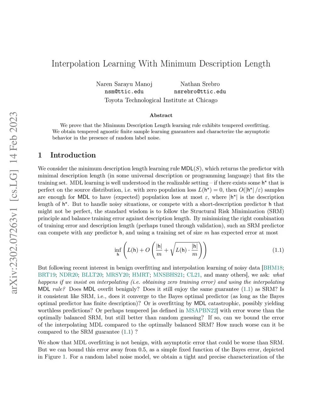 We prove that the Minimum Description Length learning rule exhibits tempered overfitting. We obtain tempered agnostic finite sample learning guarantees and characterize the asymptotic behavior in the presence of random label noise.