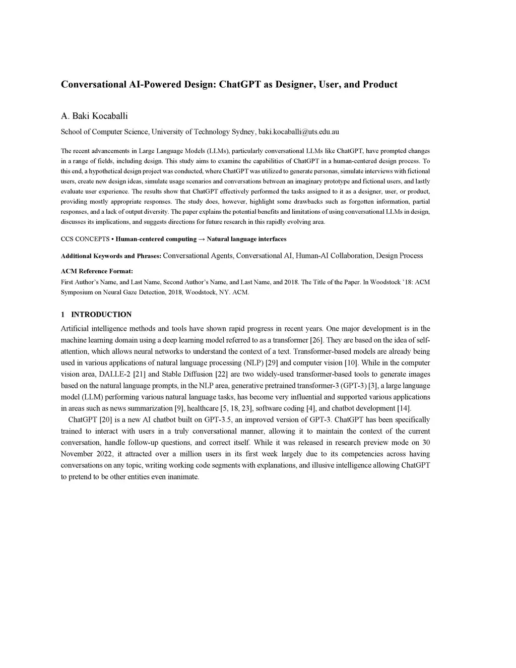 Conversational AI-Powered Design: ChatGPT as Designer, User, and Product