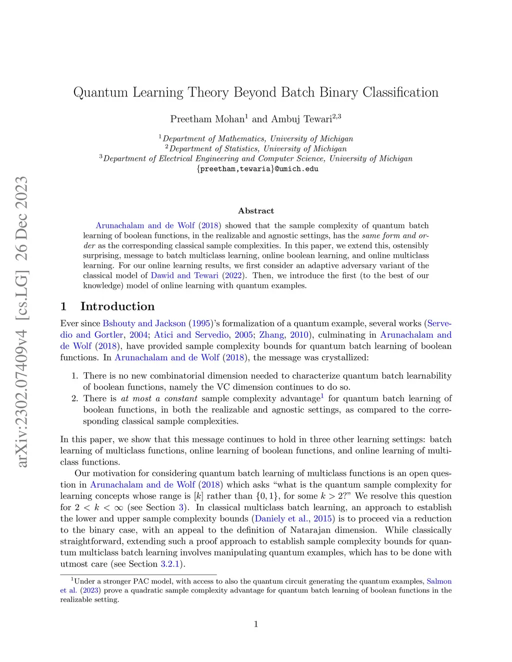 Arunachalam and de Wolf (2018) showed that the sample complexity of quantum batch learning of boolean functions, in the realizable and agnostic settings, has the same form and order as the corresponding classical sample complexities. In this paper, we extend this, ostensibly surprising, message to batch multiclass learning, online boolean learning, and online multiclass learning. For our online learning results, we first consider an adaptive adversary variant of the classical model of Dawid and Tewari (2022). Then, we introduce the first (to the best of our knowledge) model of online learning with quantum examples.