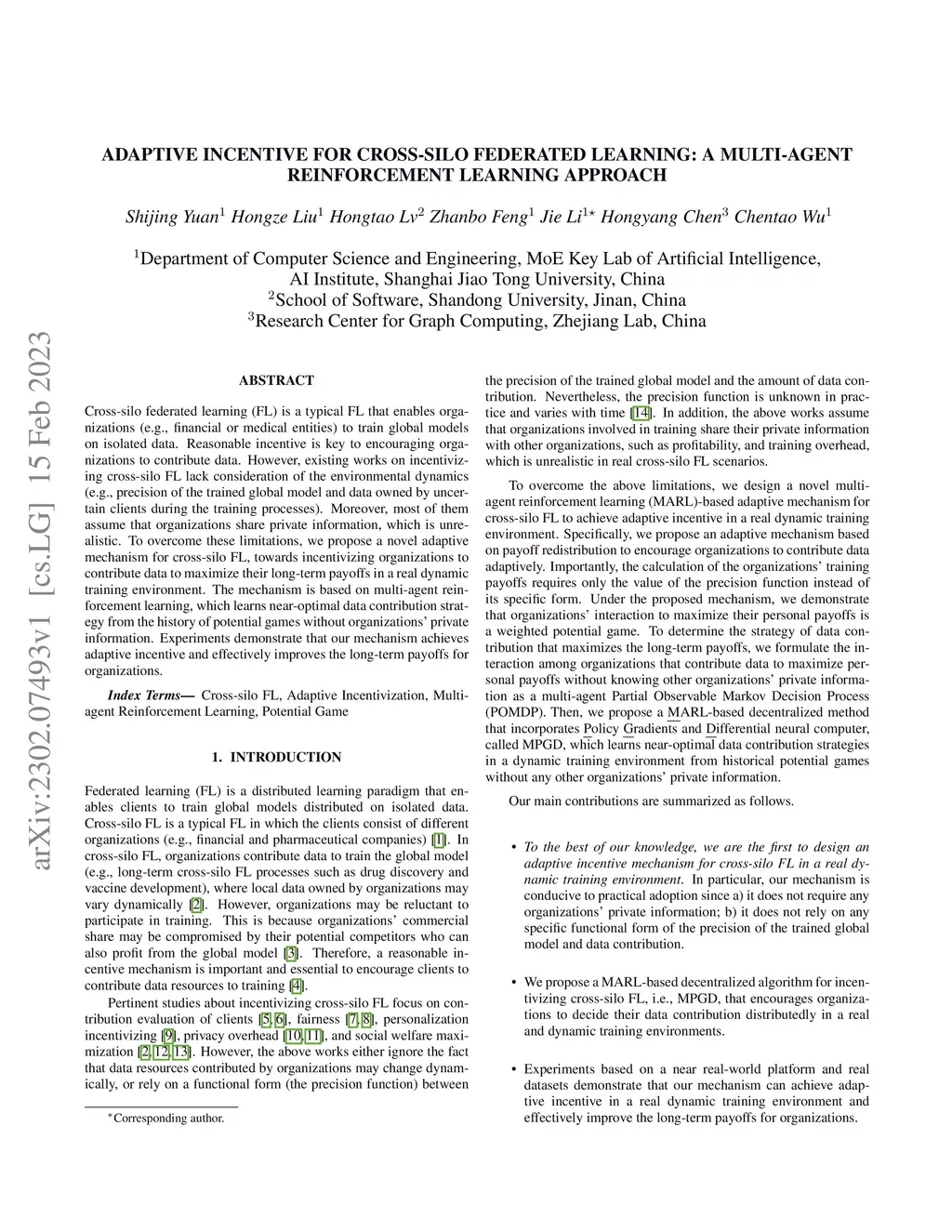 Adaptive incentive for cross-silo federated learning: A multi-agent