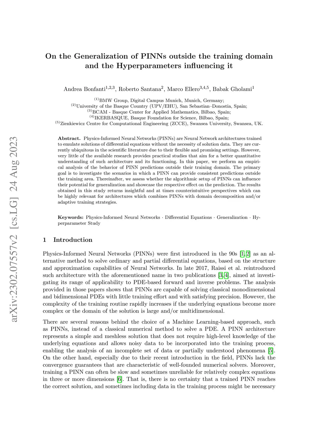 On the Generalization of PINNs outside the training domain and the