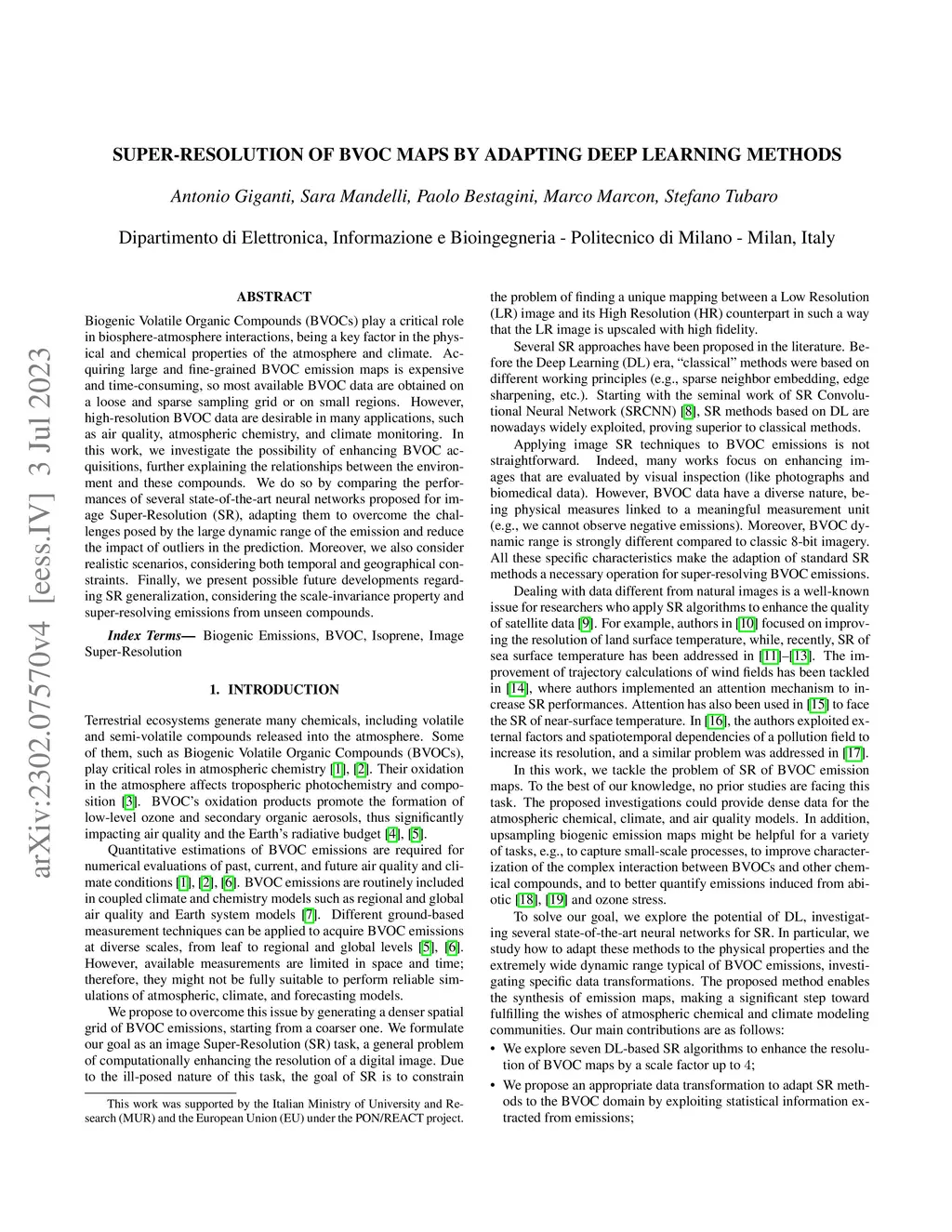 Biogenic Volatile Organic Compounds (BVOCs) play a critical role in biosphere-atmosphere interactions, being a key factor in the physical and chemical properties of the atmosphere and climate. Acquiring large and fine-grained BVOC emission maps is expensive and time-consuming, so most available BVOC data are obtained on a loose and sparse sampling grid or on small regions. However, high-resolution BVOC data are desirable in many applications, such as air quality, atmospheric chemistry, and climate monitoring. In this work, we investigate the possibility of enhancing BVOC acquisitions, further explaining the relationships between the environment and these compounds. We do so by comparing the performances of several state-of-the-art neural networks proposed for image Super-Resolution (SR), adapting them to overcome the challenges posed by the large dynamic range of the emission and reduce the impact of outliers in the prediction. Moreover, we also consider realistic scenarios, considering both temporal and geographical constraints. Finally, we present possible future developments regarding SR generalization, considering the scale-invariance property and super-resolving emissions from unseen compounds.