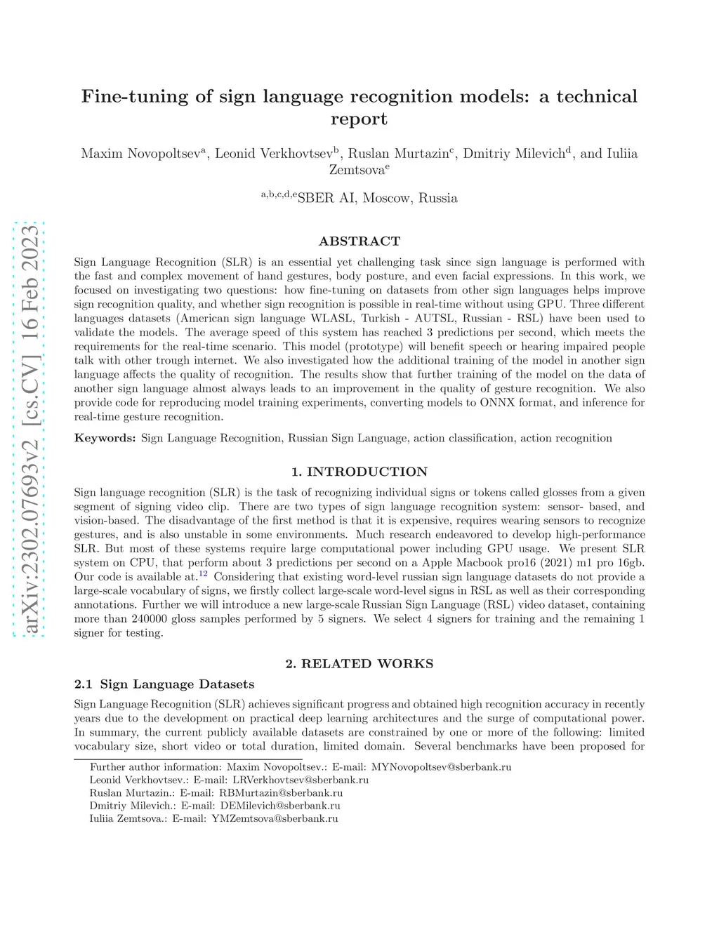 Fine-tuning of sign language recognition models: a technical report