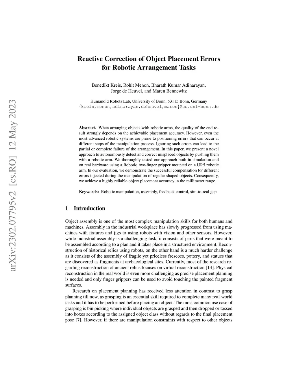 Reactive Correction of Object Placement Errors for Robotic Arrangement
