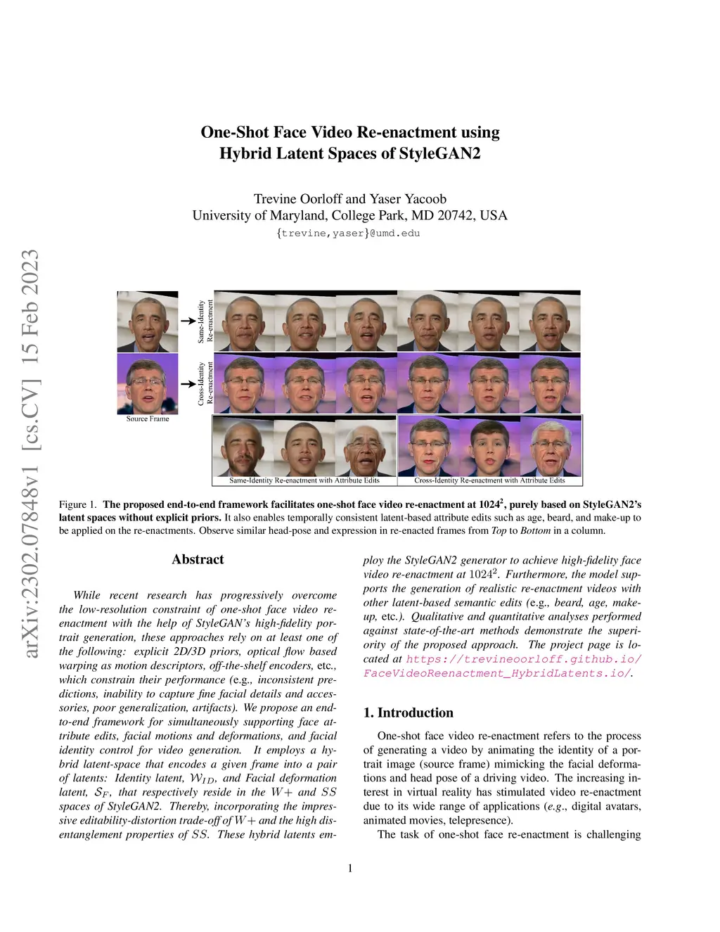 One-Shot Face Video Re-enactment using Hybrid Latent Spaces of StyleGAN2