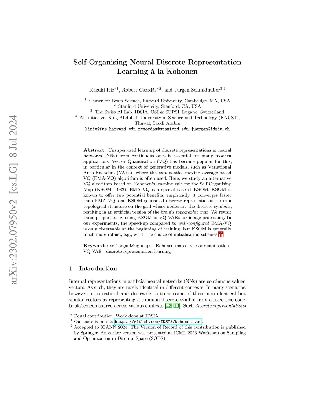 Self-Organising Neural Discrete Representation Learning à la Kohonen