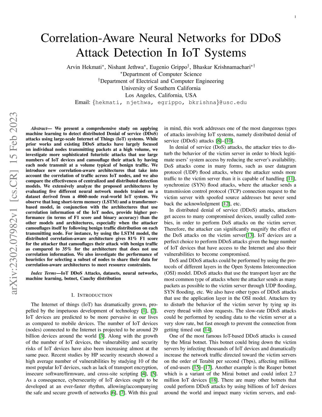 Correlation-Aware Neural Networks for DDoS Attack Detection In IoT