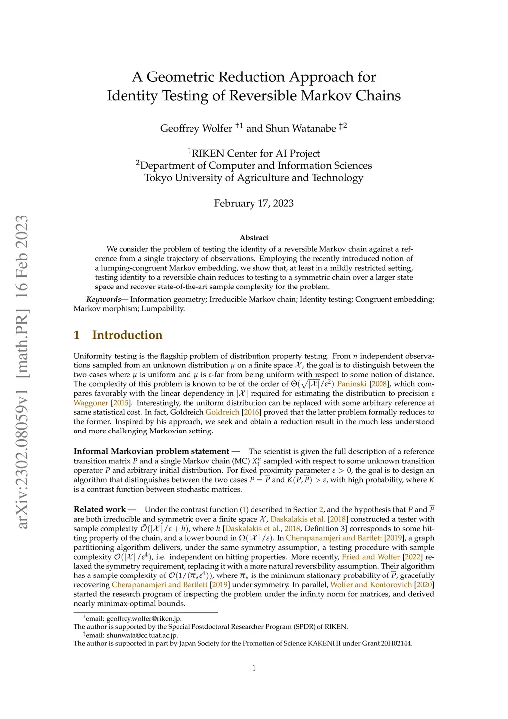 A Geometric Reduction Approach for Identity Testing of Reversible Markov