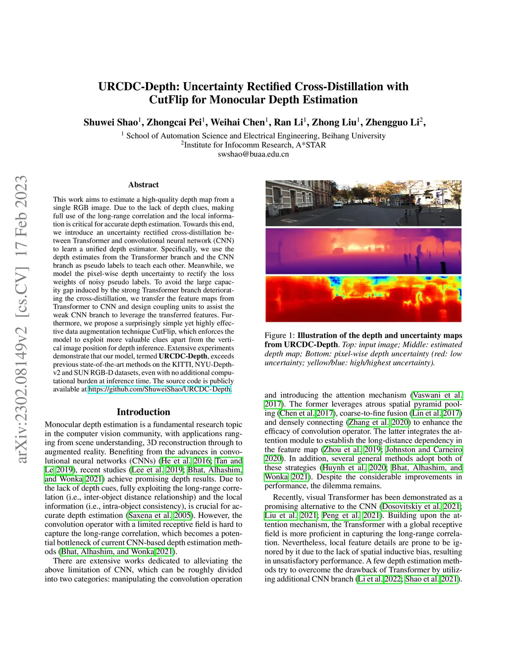URCDC-Depth: Uncertainty Rectified Cross-Distillation with CutFlip for