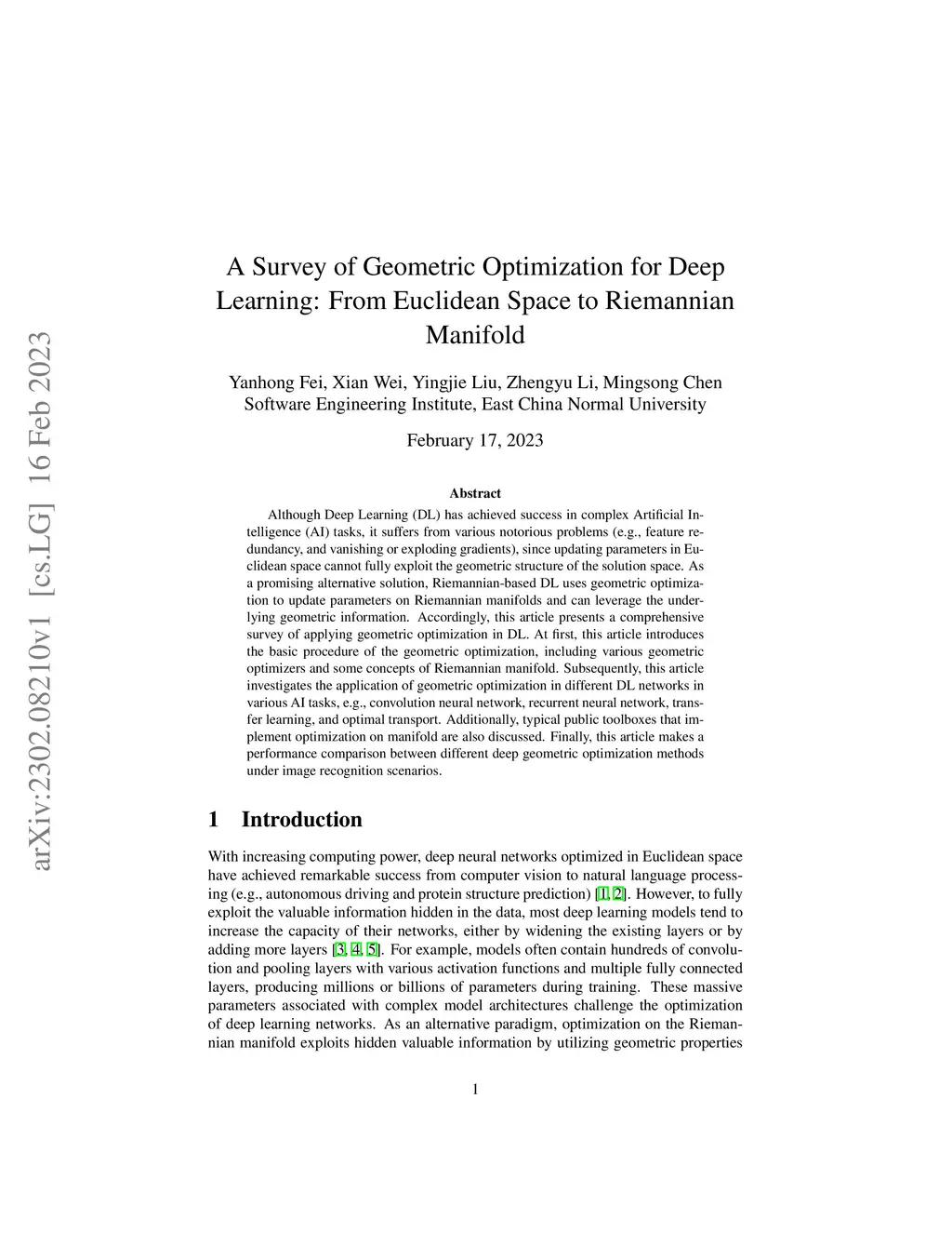 A Survey of Geometric Optimization for Deep Learning: From Euclidean