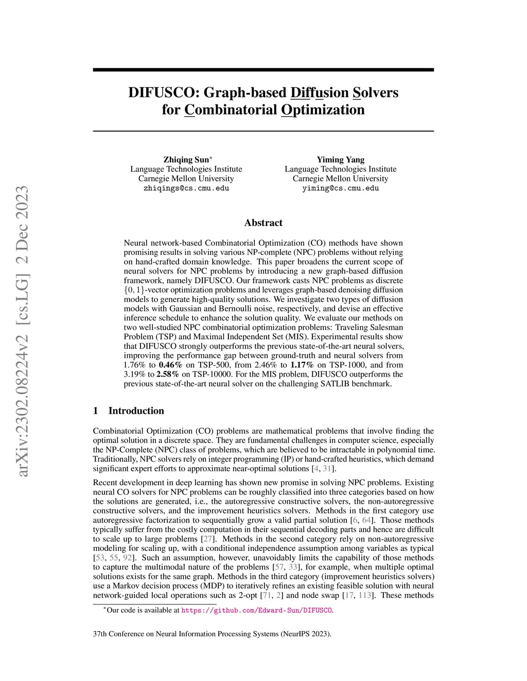 DIFUSCO: Graph-based Diffusion Solvers for Combinatorial Optimization
