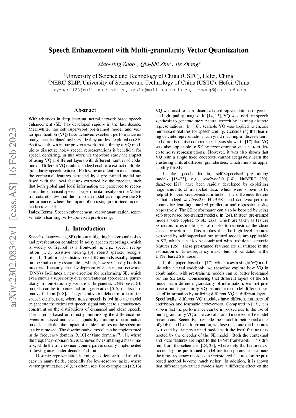 With advances in deep learning, neural network based speech enhancement (SE) has developed rapidly in the last decade. Meanwhile, the self-supervised pre-trained model and vector quantization (VQ) have achieved excellent performance on many speech-related tasks, while they are less explored on SE. As it was shown in our previous work that utilizing a VQ module to discretize noisy speech representations is beneficial for speech denoising, in this work we therefore study the impact of using VQ at different layers with different number of codebooks. Different VQ modules indeed enable to extract multiple-granularity speech features. Following an attention mechanism, the contextual features extracted by a pre-trained model are fused with the local features extracted by the encoder, such that both global and local information are preserved to reconstruct the enhanced speech. Experimental results on the Valentini dataset show that the proposed model can improve the SE performance, where the impact of choosing pre-trained models is also revealed.