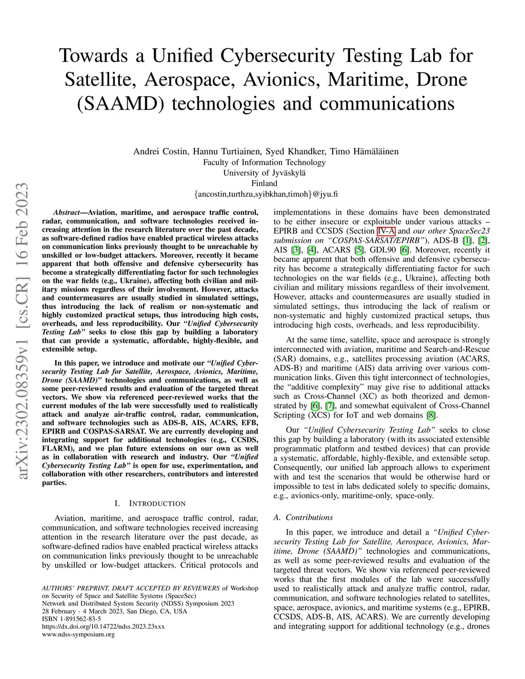 Towards a Unified Cybersecurity Testing Lab for Satellite, Aerospace,