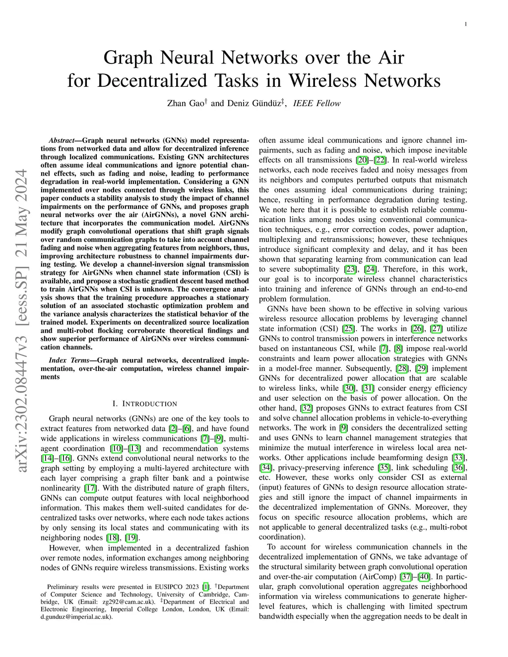 Graph neural networks (GNNs) model representations from networked data and allow for decentralized inference through localized communications. Existing GNN architectures often assume ideal communications and ignore potential channel effects, such as fading and noise, leading to performance degradation in real-world implementation. Considering a GNN implemented over nodes connected through wireless links, this paper conducts a stability analysis to study the impact of channel impairments on the performance of GNNs, and proposes graph neural networks over the air (AirGNNs), a novel GNN architecture that incorporates the communication model. AirGNNs modify graph convolutional operations that shift graph signals over random communication graphs to take into account channel fading and noise when aggregating features from neighbors, thus, improving architecture robustness to channel impairments during testing. We develop a channel-inversion signal transmission strategy for AirGNNs when channel state information (CSI) is available, and propose a stochastic gradient descent based method to train AirGNNs when CSI is unknown. The convergence analysis shows that the training procedure approaches a stationary solution of an associated stochastic optimization problem and the variance analysis characterizes the statistical behavior of the trained model. Experiments on decentralized source localization and multi-robot flocking corroborate theoretical findings and show superior performance of AirGNNs over wireless communication channels.