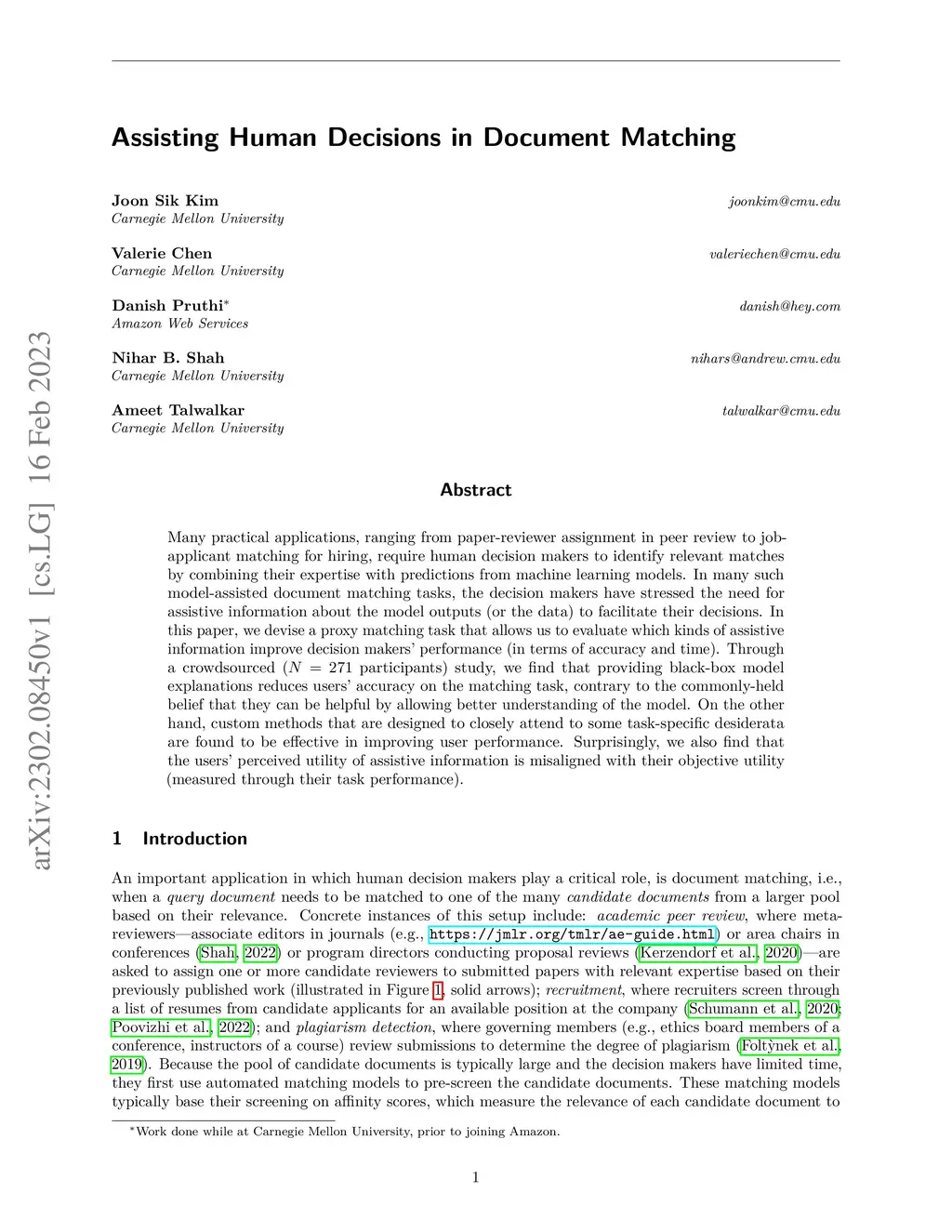 Many practical applications, ranging from paper-reviewer assignment in peer review to job-applicant matching for hiring, require human decision makers to identify relevant matches by combining their expertise with predictions from machine learning models. In many such model-assisted document matching tasks, the decision makers have stressed the need for assistive information about the model outputs (or the data) to facilitate their decisions. In this paper, we devise a proxy matching task that allows us to evaluate which kinds of assistive information improve decision makers' performance (in terms of accuracy and time). Through a crowdsourced (N=271 participants) study, we find that providing black-box model explanations reduces users' accuracy on the matching task, contrary to the commonly-held belief that they can be helpful by allowing better understanding of the model. On the other hand, custom methods that are designed to closely attend to some task-specific desiderata are found to be effective in improving user performance. Surprisingly, we also find that the users' perceived utility of assistive information is misaligned with their objective utility (measured through their task performance).