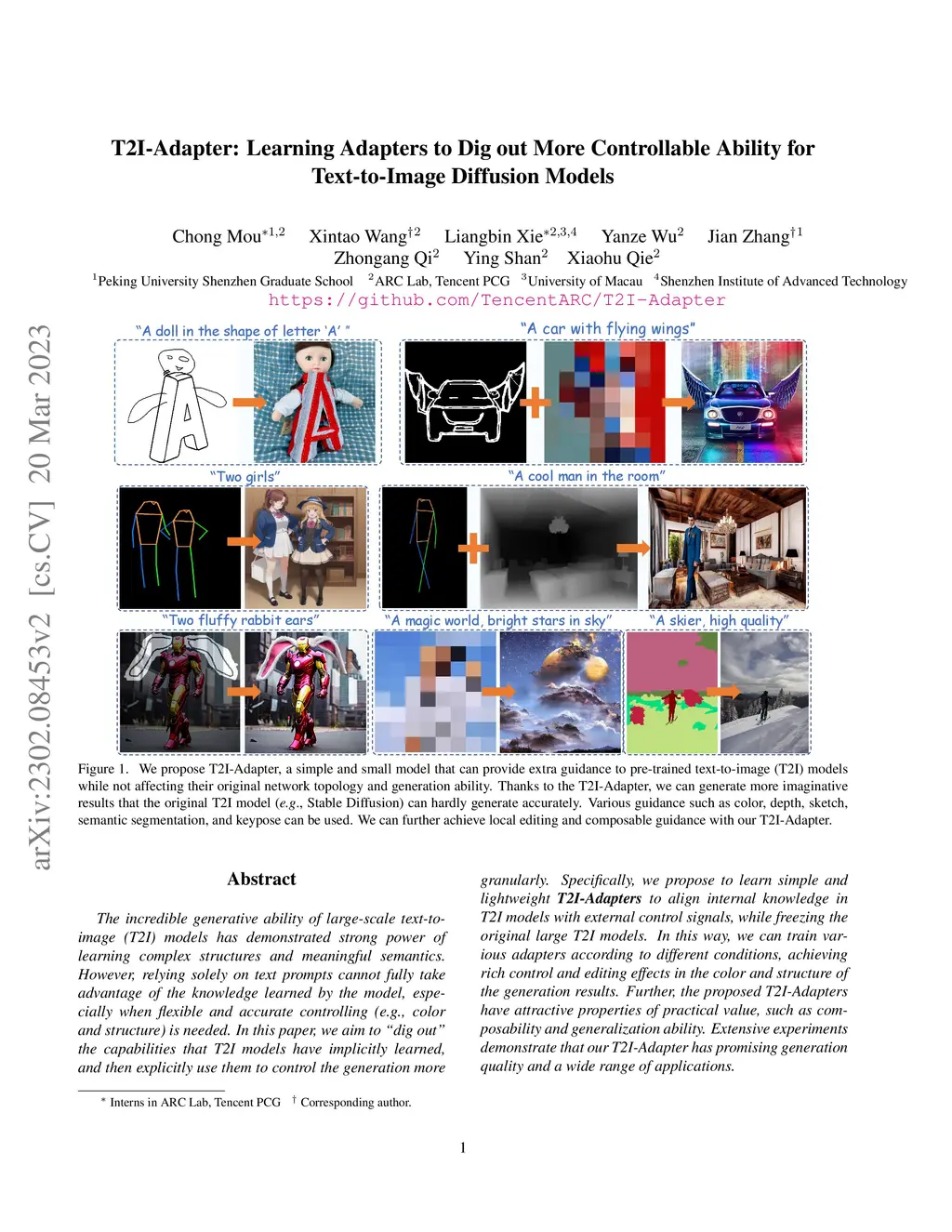 T2I-Adapter: Learning Adapters to Dig out More Controllable Ability for