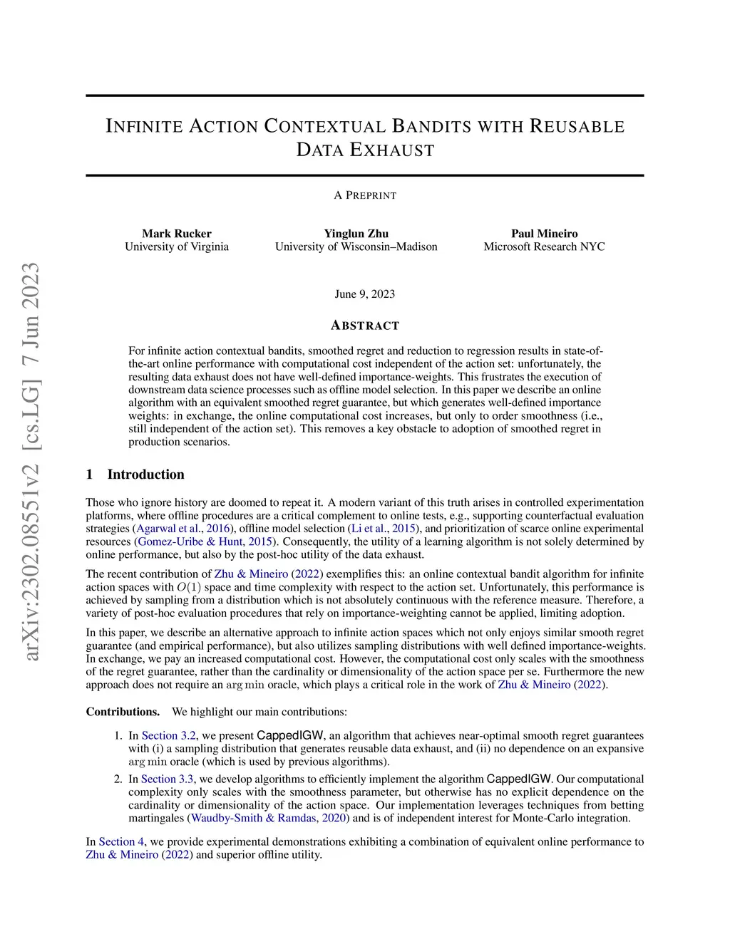 Infinite Action Contextual Bandits with Reusable Data Exhaust