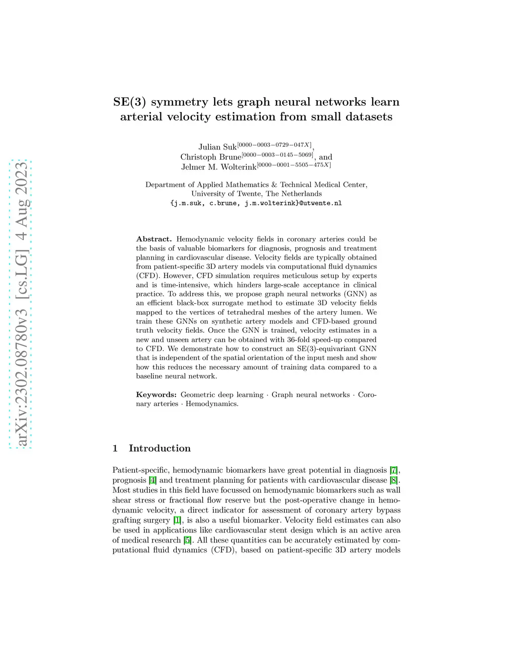 SE(3) symmetry lets graph neural networks learn arterial velocity