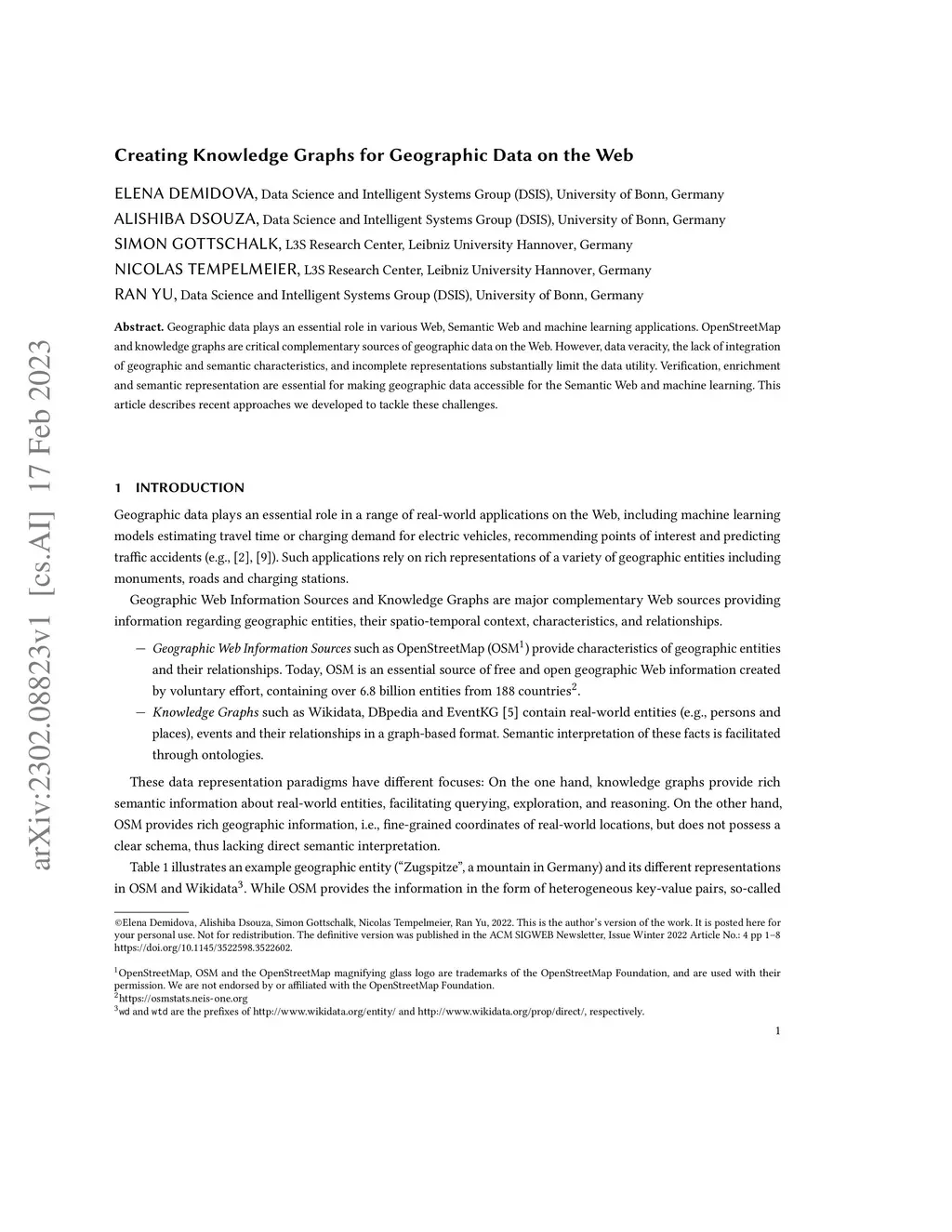 Geographic data plays an essential role in various Web, Semantic Web and machine learning applications. OpenStreetMap and knowledge graphs are critical complementary sources of geographic data on the Web. However, data veracity, the lack of integration of geographic and semantic characteristics, and incomplete representations substantially limit the data utility. Verification, enrichment and semantic representation are essential for making geographic data accessible for the Semantic Web and machine learning. This article describes recent approaches we developed to tackle these challenges.
