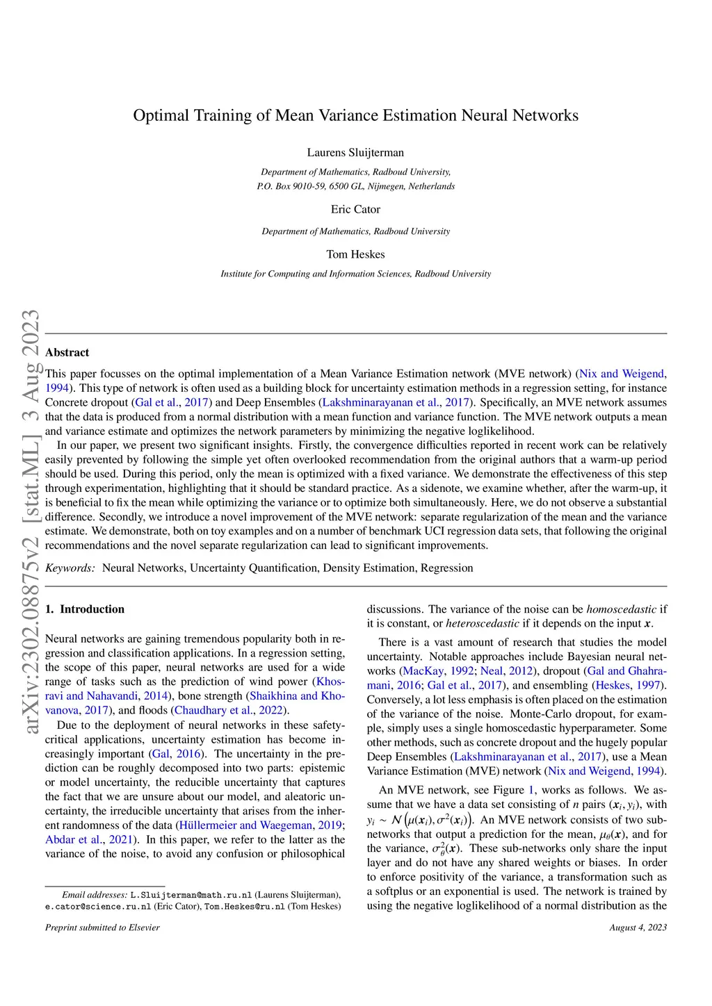 This paper focusses on the optimal implementation of a Mean Variance Estimation network (MVE network) (Nix and Weigend, 1994). This type of network is often used as a building block for uncertainty estimation methods in a regression setting, for instance Concrete dropout (Gal et al., 2017) and Deep Ensembles (Lakshminarayanan et al., 2017). Specifically, an MVE network assumes that the data is produced from a normal distribution with a mean function and variance function. The MVE network outputs a mean and variance estimate and optimizes the network parameters by minimizing the negative loglikelihood. In our paper, we present two significant insights. Firstly, the convergence difficulties reported in recent work can be relatively easily prevented by following the simple yet often overlooked recommendation from the original authors that a warm-up period should be used. During this period, only the mean is optimized with a fixed variance. We demonstrate the effectiveness of this step through experimentation, highlighting that it should be standard practice. As a sidenote, we examine whether, after the warm-up, it is beneficial to fix the mean while optimizing the variance or to optimize both simultaneously. Here, we do not observe a substantial difference. Secondly, we introduce a novel improvement of the MVE network: separate regularization of the mean and the variance estimate. We demonstrate, both on toy examples and on a number of benchmark UCI regression data sets, that following the original recommendations and the novel separate regularization can lead to significant improvements.