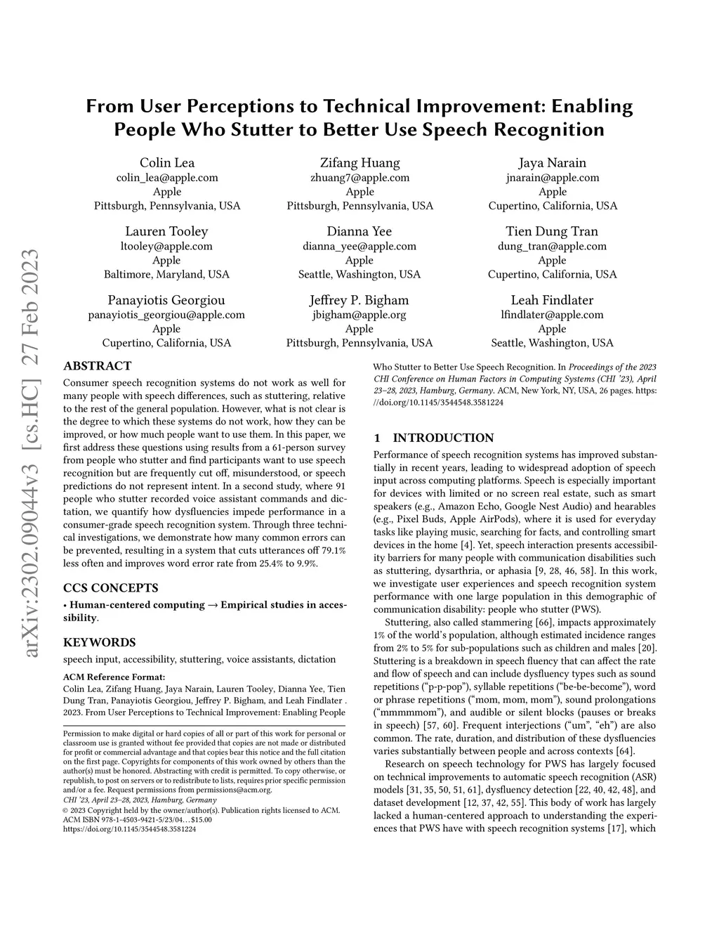 Consumer speech recognition systems do not work as well for many people with speech diferences, such as stuttering, relative to the rest of the general population. However, what is not clear is the degree to which these systems do not work, how they can be improved, or how much people want to use them. In this paper, we frst address these questions using results from a 61-person survey from people who stutter and fnd participants want to use speech recognition but are frequently cut of, misunderstood, or speech predictions do not represent intent. In a second study, where 91 people who stutter recorded voice assistant commands and dictation, we quantify how dysfuencies impede performance in a consumer-grade speech recognition system. Through three technical investigations, we demonstrate how many common errors can be prevented, resulting in a system that cuts utterances of 79.1% less often and improves word error rate from 25.4% to 9.9%.