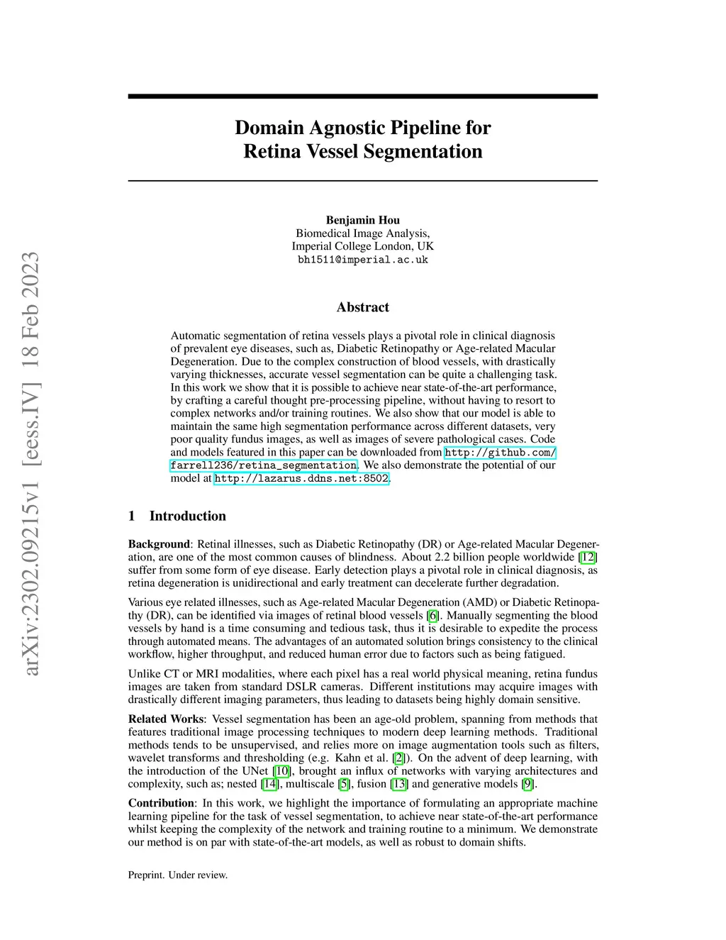 Domain Agnostic Pipeline for Retina Vessel Segmentation